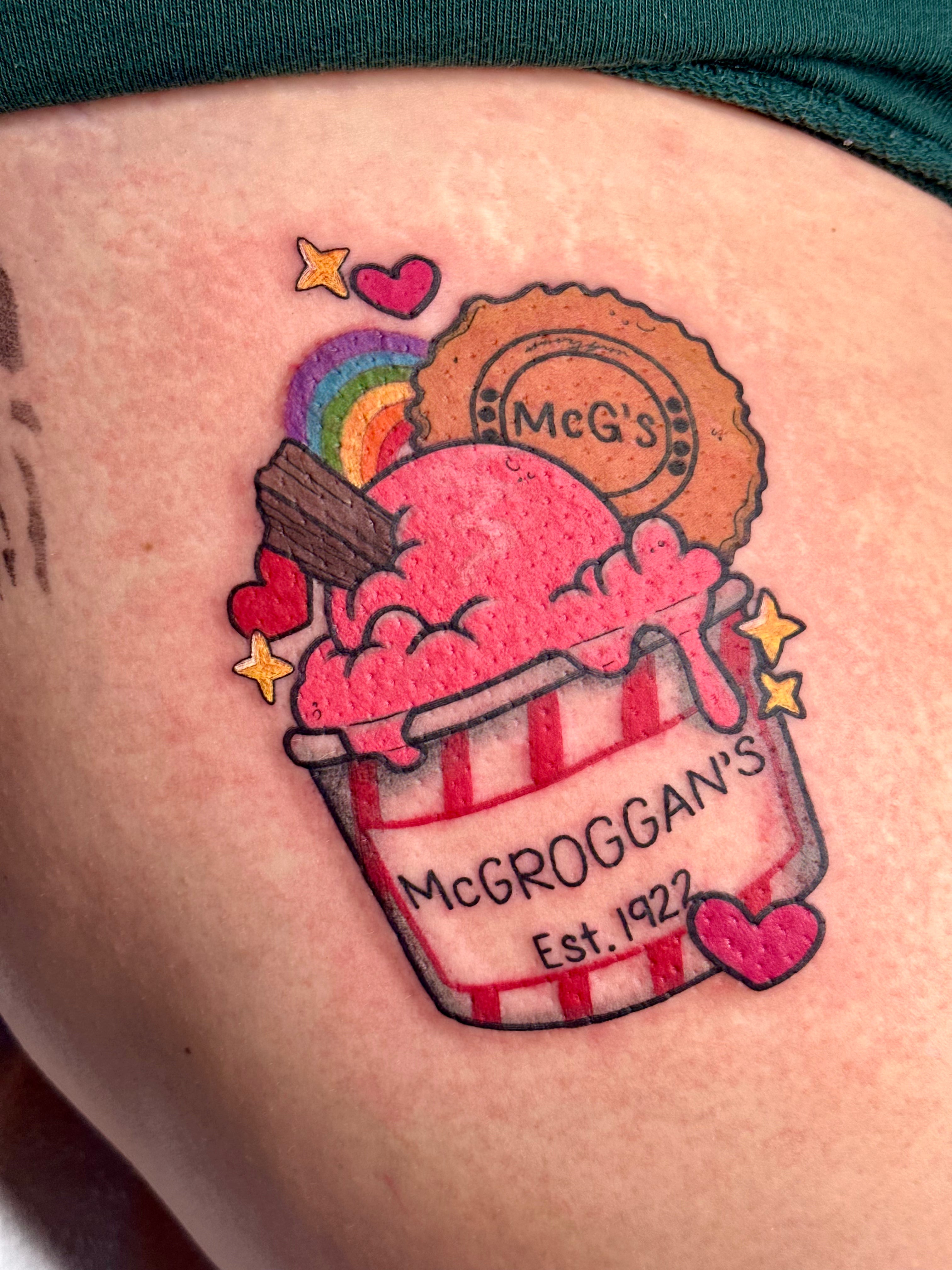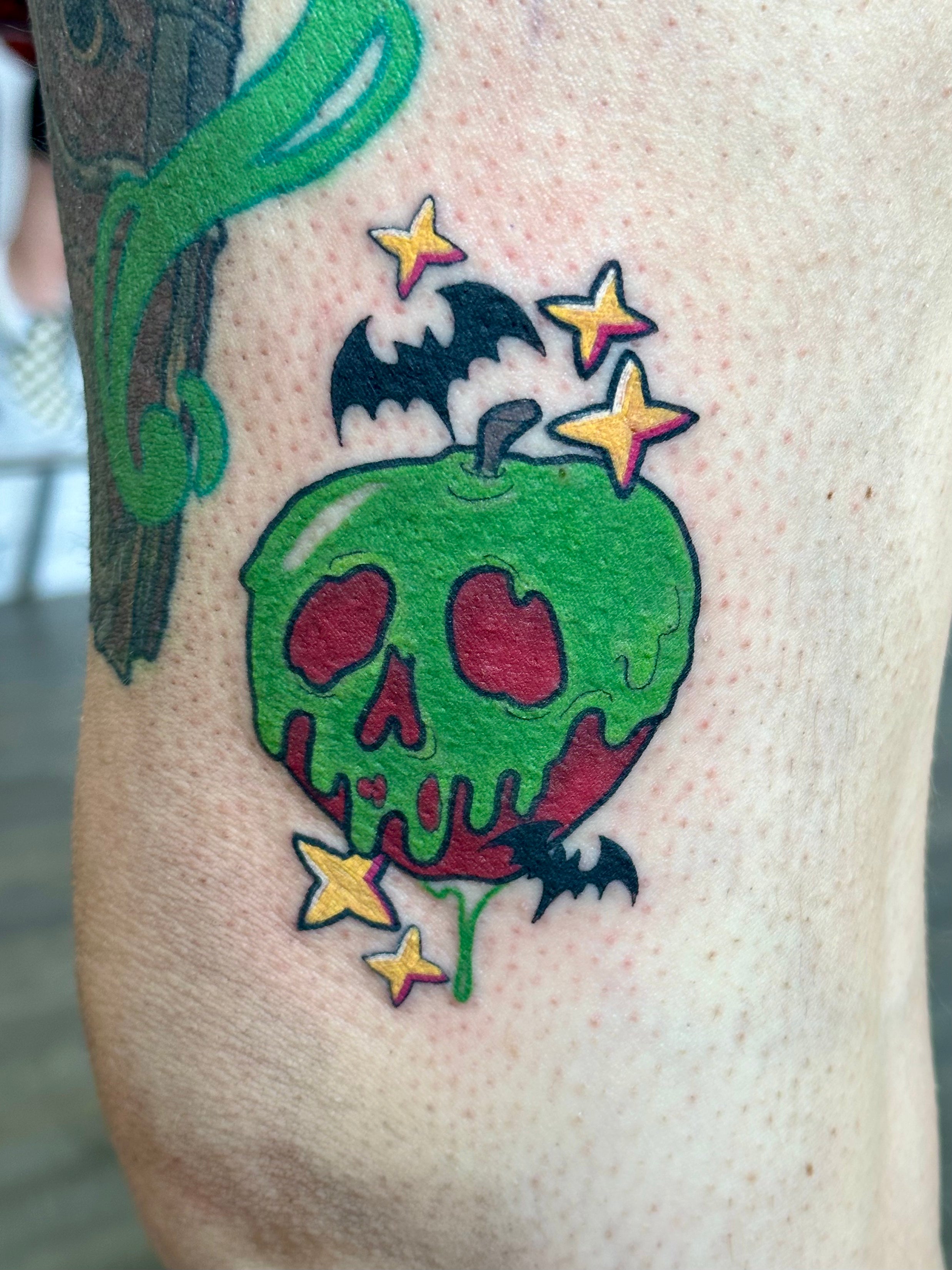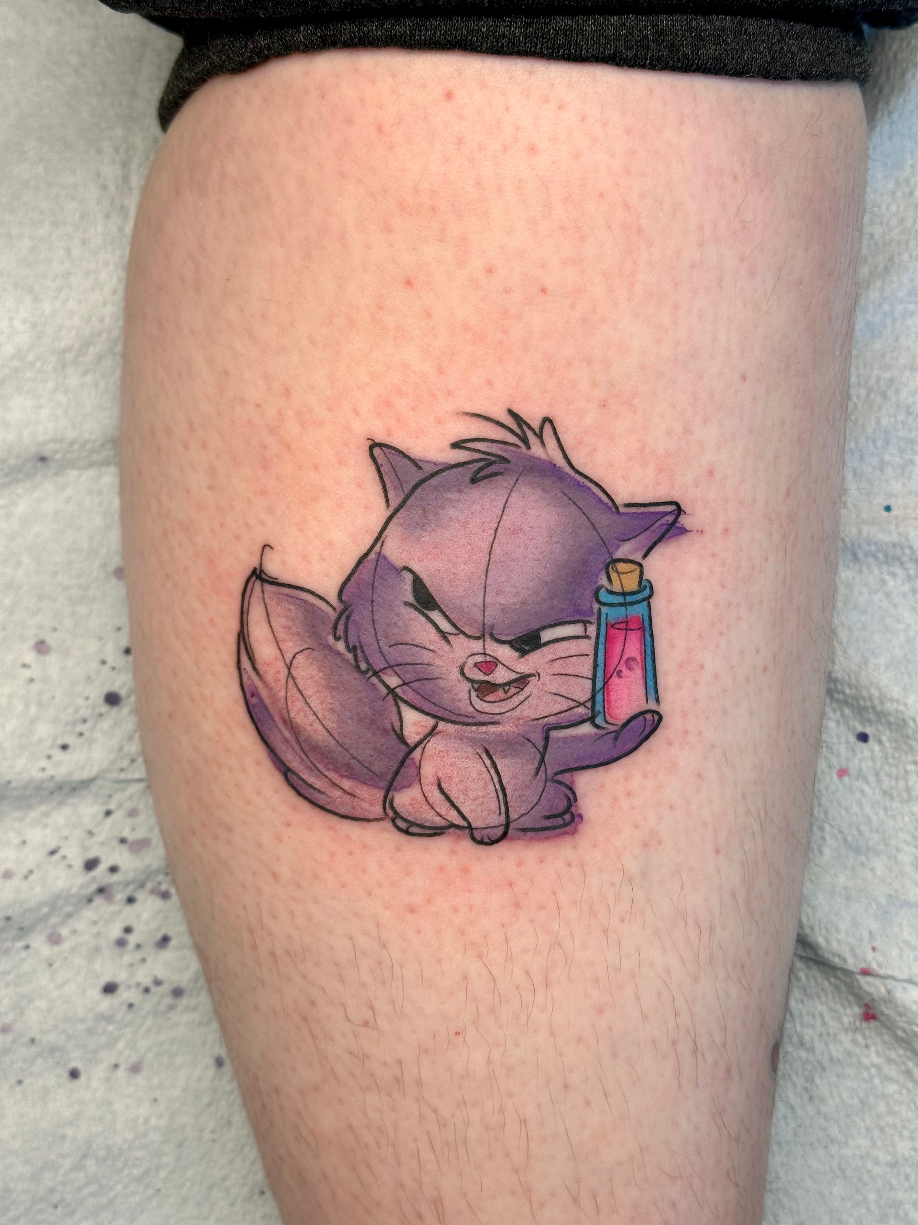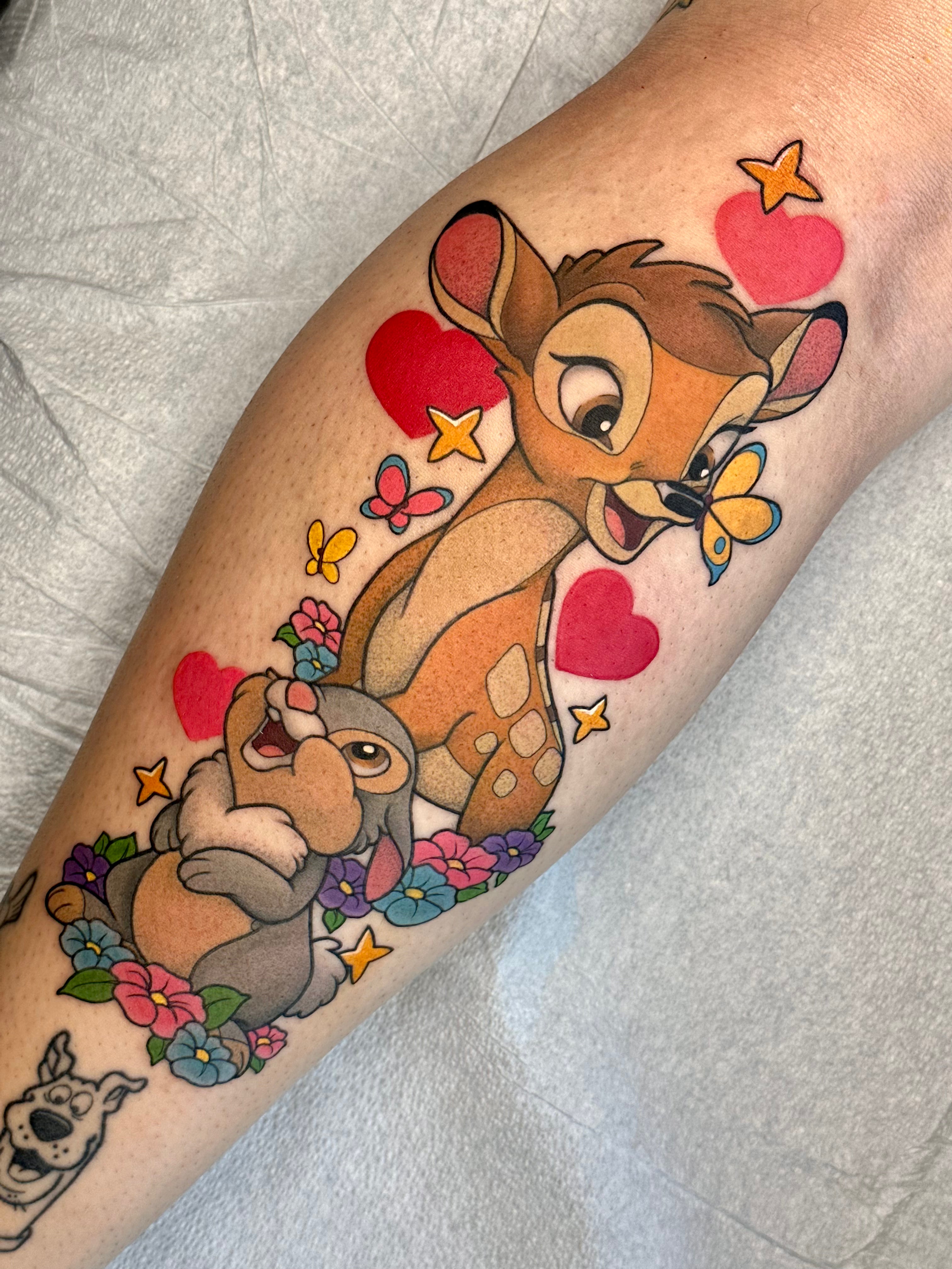 I focus mainly on cartoons and pop culture but I also enjoy tattooing flowers, animals//pets, plants, food, anything I can make fun and bold!